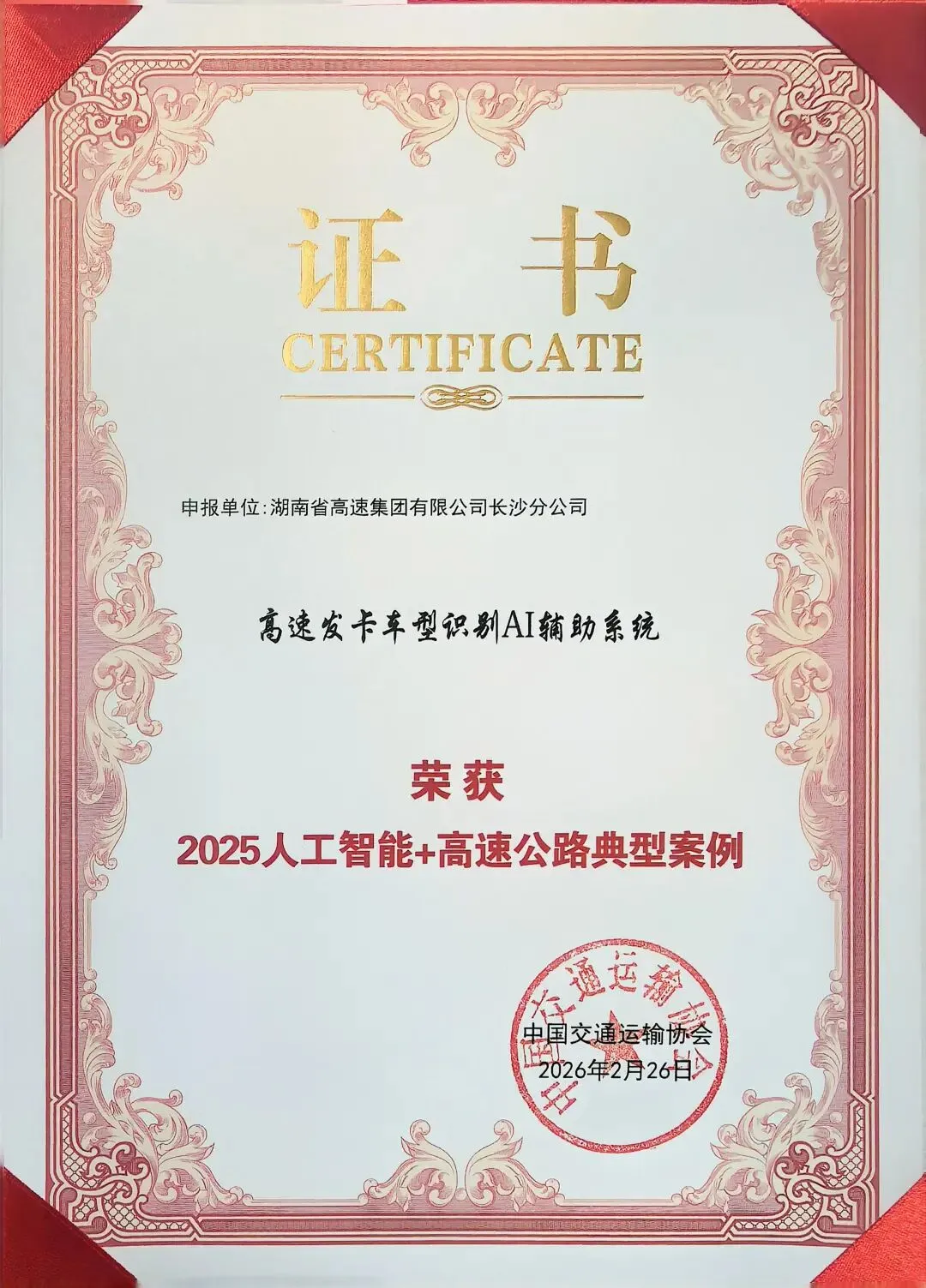 下一步,长沙分公司将以此次荣誉为动力,持续收集一线使用反馈,不断优化系统识别精度与运行稳定性,深化人工智能与收费运营融合应用,以数字化、智能化赋能高速公路高质量发展。