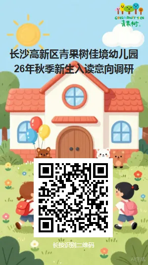 您好!为了更好地做好长沙高新区青果树佳境幼儿园2026年秋季招生工作,现特进行招生工作摸排,招收小中大班幼儿。