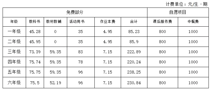 一、本校免收课本费、教辅及活动用书费、作业本费和杂费,学生只需缴纳少量自愿选择的服务性收费。