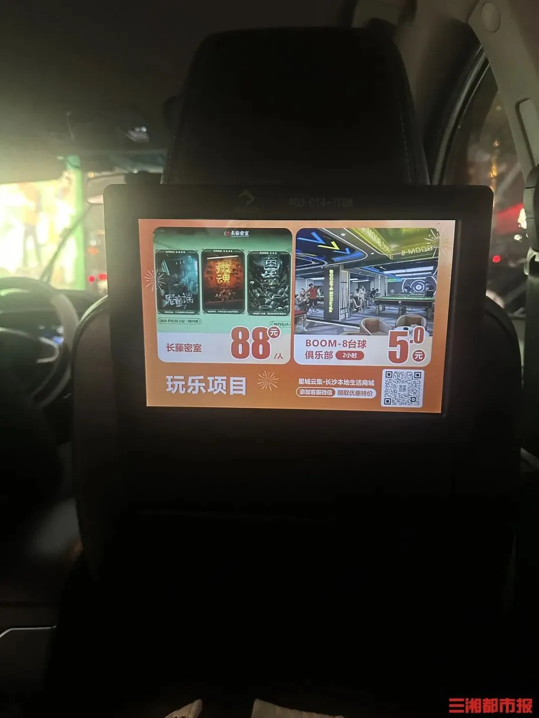 网约车后排广告屏幕。李致远 摄