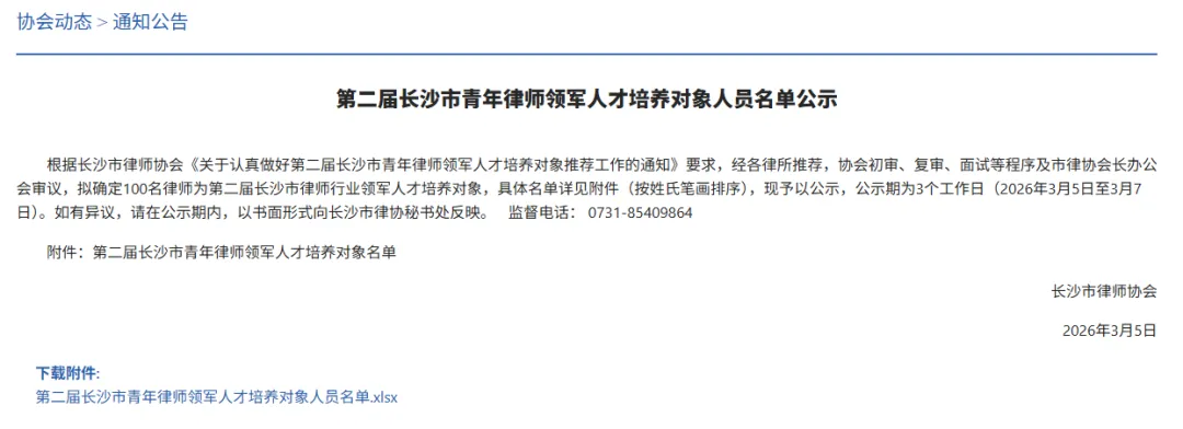近日,长沙市律师协会发布了《第二届长沙市青年律师领军人才培养对象人员名单公示》、《关于公布 2025 年度长沙市律师协会区县(市)律师工作委员会、专门专业委员会优秀副主任、优秀委员、优秀主任助理名单的通知》,京师长沙律所多名律师上榜,充分展现了京师长沙律师的专业担当与行业风采。