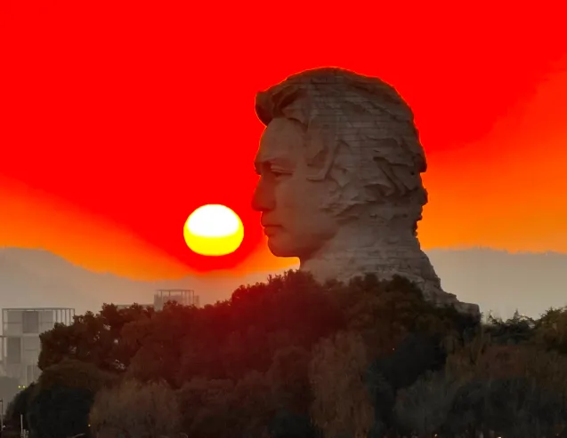 橘子洲的盛名,因一句词而千古流传。1925年,青年毛泽东站在洲头,面对滔滔湘水、茫茫群山,挥笔写下《沁园春·长沙》,“独立寒秋,湘江北去,橘子洲头”的豪迈,“问苍茫大地,谁主沉浮”的追问,让这座江心绿洲,从此与家国情怀紧密相连。如今,洲头矗立的青年毛泽东艺术雕塑,目光如炬,望向远方,与岳麓山、湘江融为一体,成为长沙最鲜明的城市符号。