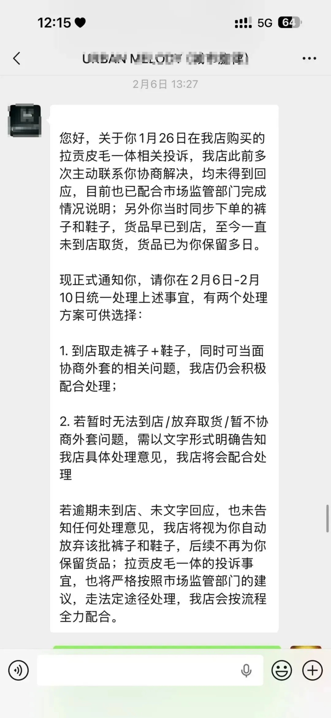 △女装店提出的新的解决方案 受访者供图双方多次协商失败后,冷女士又多次向市场监管部门投诉此事,并且于3月12日、3月14日前往该店线下门店协商。期间双方发生了言语冲突,并且双方均报了警,警方称双方各有各的道理,建议协商解决该问题。商家则认为冷女士影响到了店铺的正常经营。