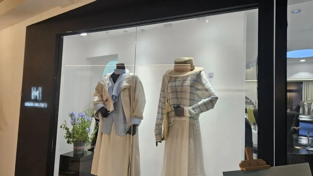 △女装店的衣服展柜,冷女士称她所购买的皮草当时穿在其中一个模特身上。冷女士要求店方提供这件衣服的生产厂家信息以及进口资质证明,并要求退货退款。