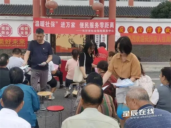 赴煤炭坝镇贺石桥村宣讲社保政策。图片均为 长沙市社保中心 提供