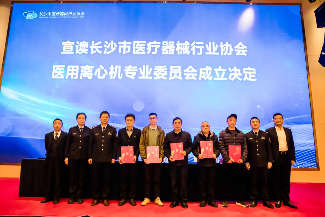长沙市医疗器械行业协会会长郭德斌宣读了《关于成立长沙市医疗器械行业协会医用离心机专业委员会的决定》。会议向医用离心机专业委员会首任主任、副主任发放了聘书。为进一步规范行业秩序、提升长沙医用离心机产业竞争力,该专委会正式成立,将重点推进行业自律、资源对接、团体标准制定、法规与技能培训等工作,助力产业链上下游协同共赢。