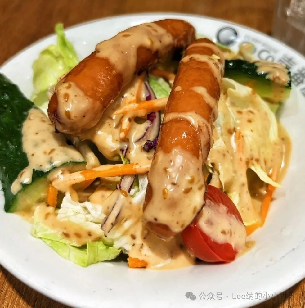 香肠蔬菜沙拉。这个香肠很好吃。