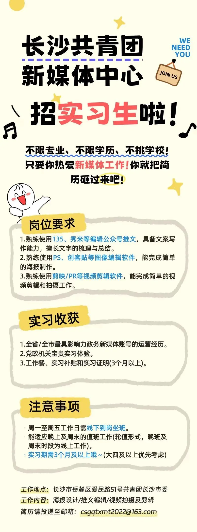 >长沙共青团新媒体中心招聘实习生