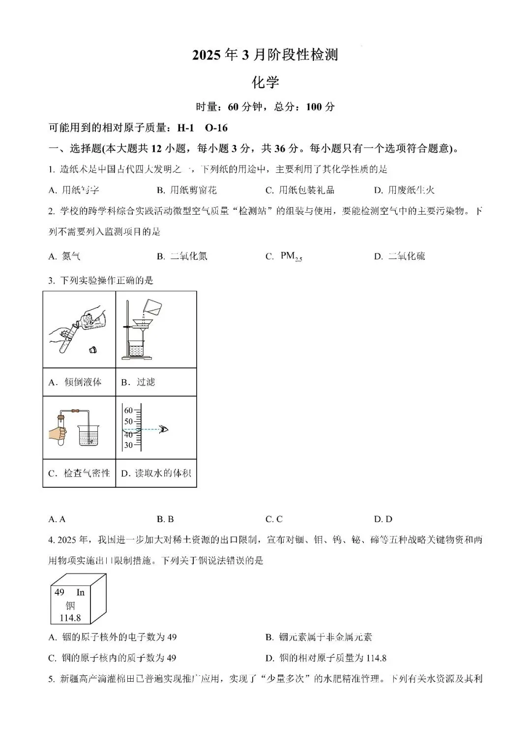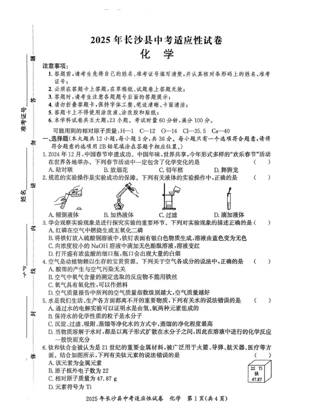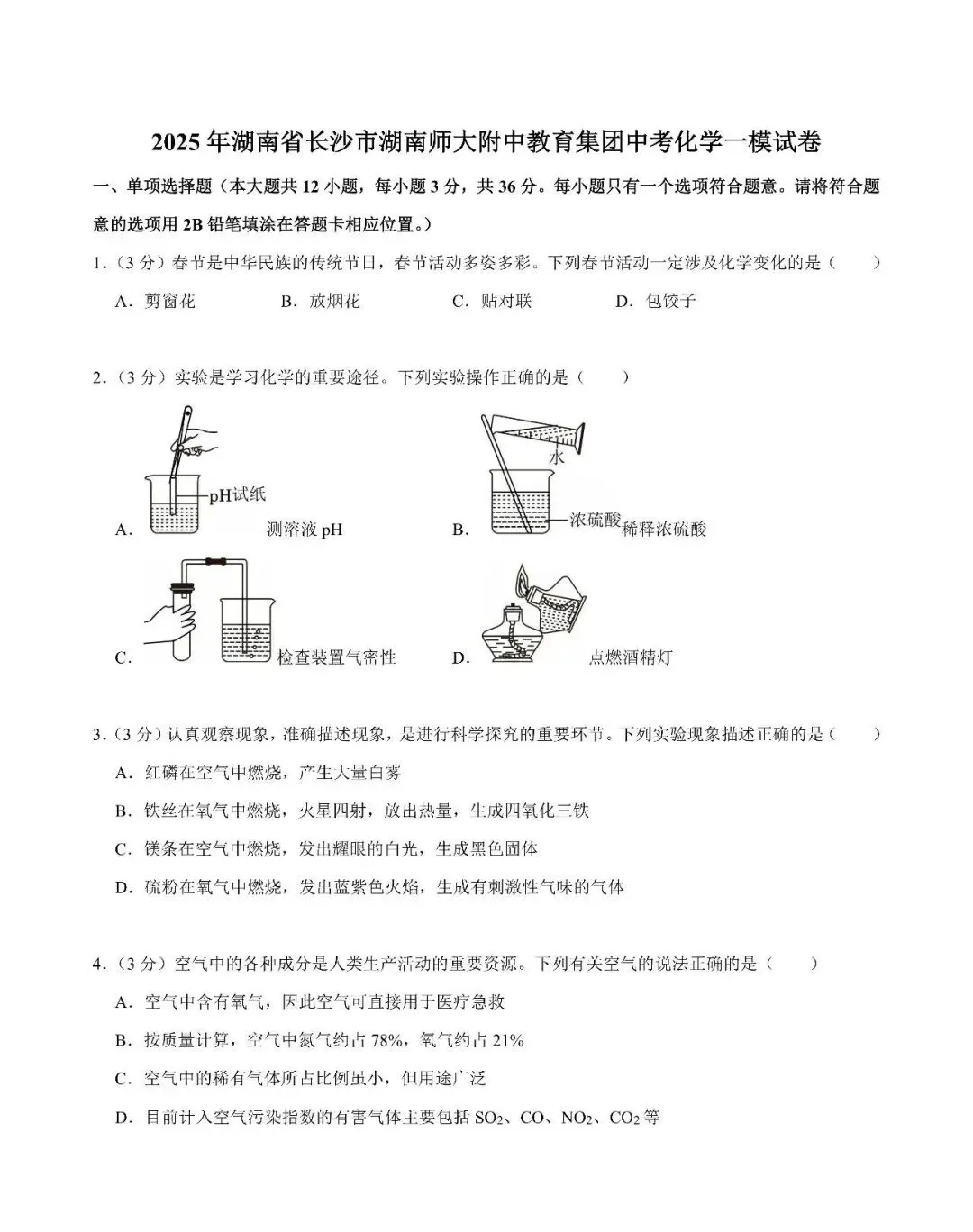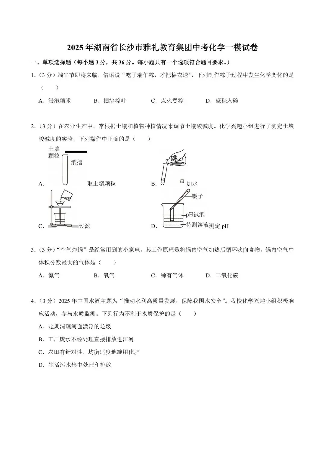 【真题汇总】——2025年长沙九年级下册第一次化学检测试卷+参考答案(免费领取)