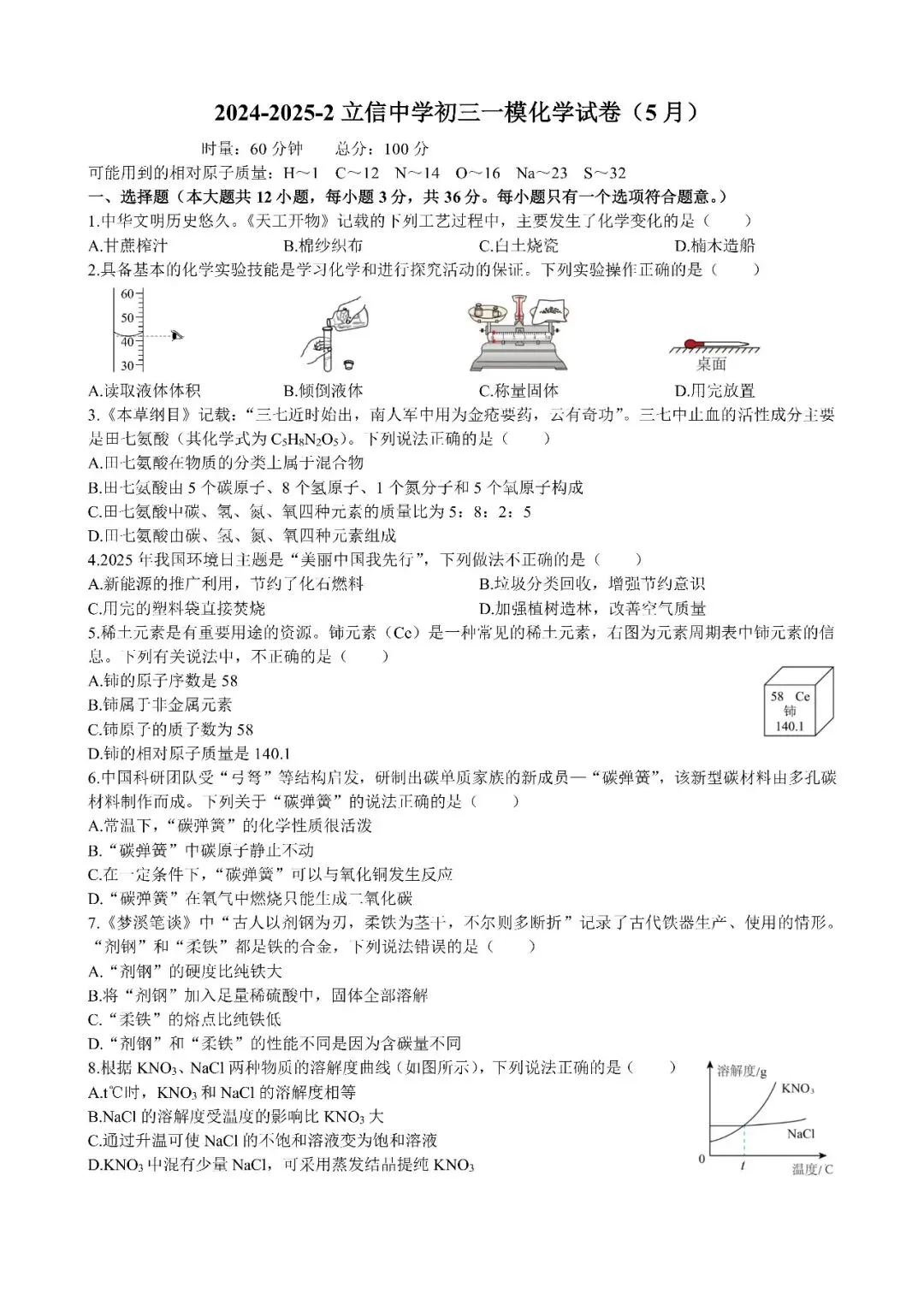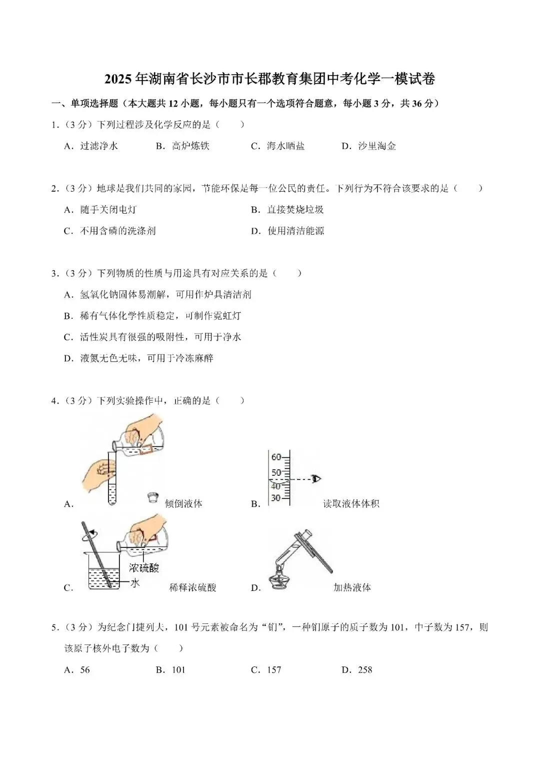【真题汇总】——2025年长沙九年级下册入学检测化学试卷+参考答案(免费领取)