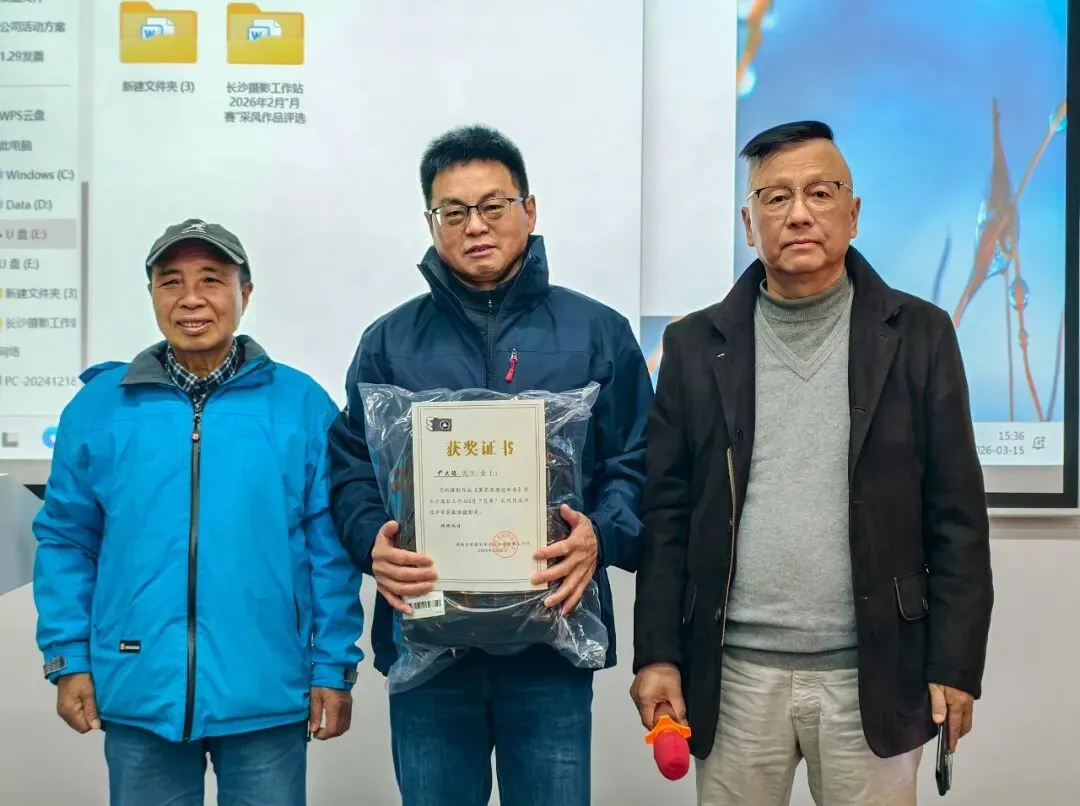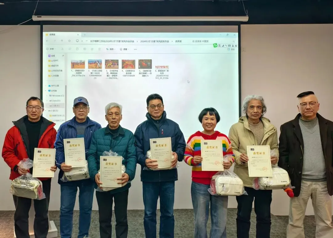 接下来,由湖南省老摄影家协会副主席陈光辉宣读了2月采风创作评选结果,经评委会严格筛选,共评出:“最佳摄影奖”1名、优秀奖6名。并为获奖者逐一颁发了荣誉证书和奖品。这既是对创作者技艺的肯定,也能激发更多会员的创作热情。