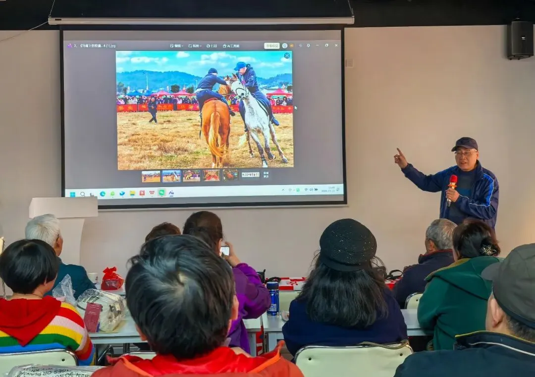 分享环节堪称整场活动的“精彩时刻”。获奖者依次登台,分享自己的创作过程和体会。比如如何抓住马年特色,等待最佳画面的出现;如何在现场找到最佳拍摄机位和高度,守株待兔等等,分享者娓娓道来,像是拉家常一样,把构图灵感、创作思路、主旨表达及对摄影独到的理解和体会,都干货满满地分享出来,让在场的会员深受启发,收获不小。