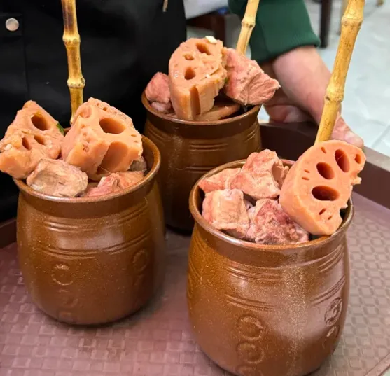 如果只学一道武汉菜,我会选排骨藕汤。筒子骨先焯水,再和湖北粉藕一起小火慢炖,先不急着放盐,炖到藕边起沙、排骨一抿就脱骨,最后撒一点白胡椒和小葱。重点不是火猛,而是时间要够,汤才会甜。