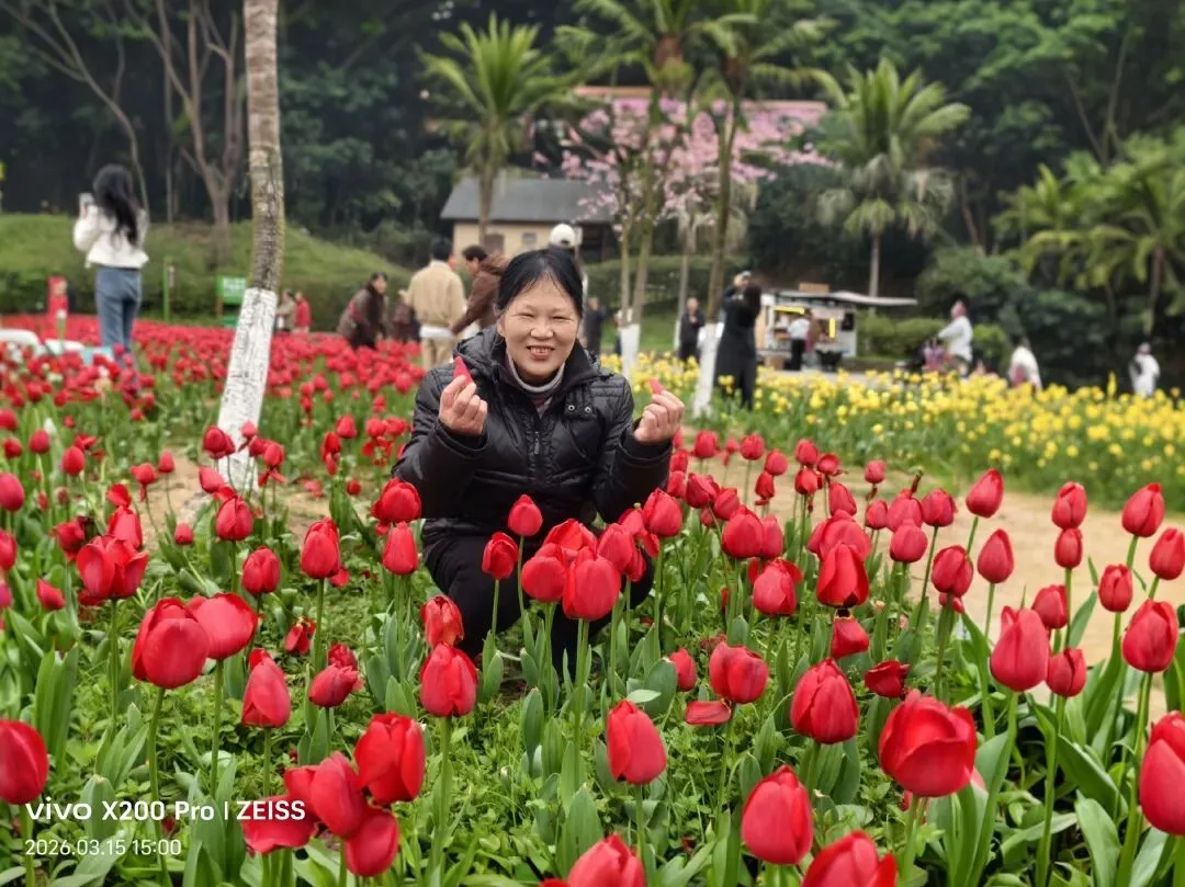 周日是二姐生日,午餐后,大侄女敏敏说:“听我同事说,长沙园林生态园的郁金香很美,我请你们三姐妹一起去赏花好吗?”敏平常工作很忙,难得她今天休息,我们便欣然接受她的美意,立刻上车。一路比较畅通,终点停车场还没修完,小石块铺就的停车位还是很多,据工作人员说,周六接待了好几万游客。