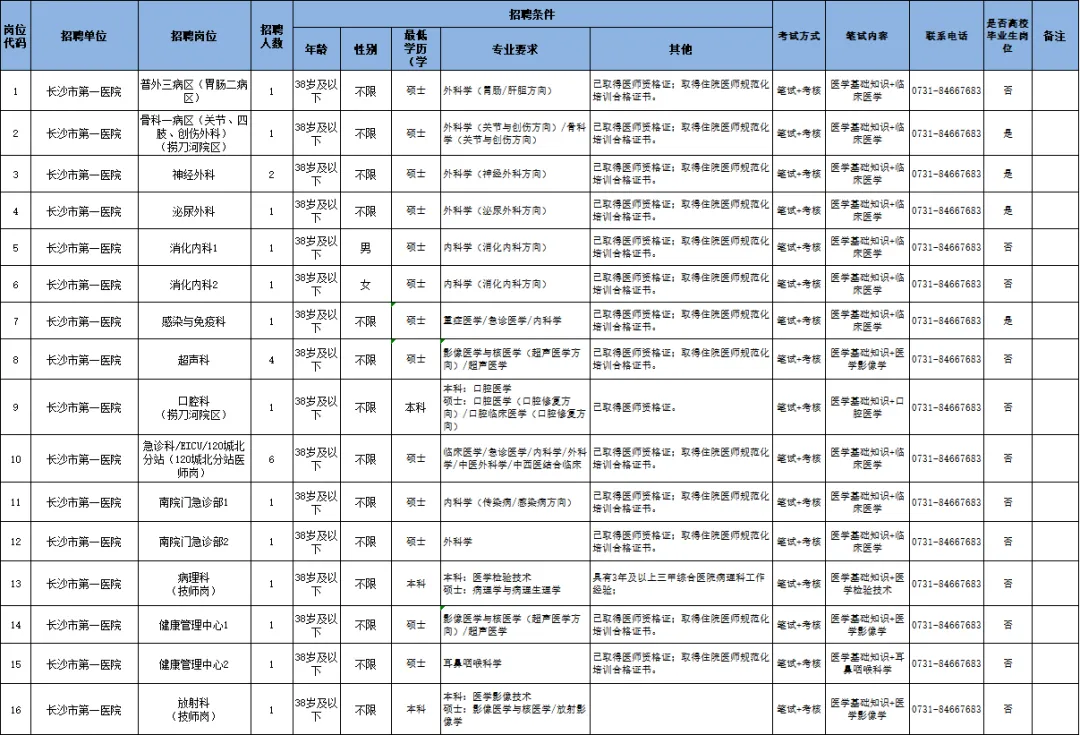此次人员招聘计划82名,详见《长沙市第一医院2026年自主招聘工作人员岗位信息表》(附件1)。