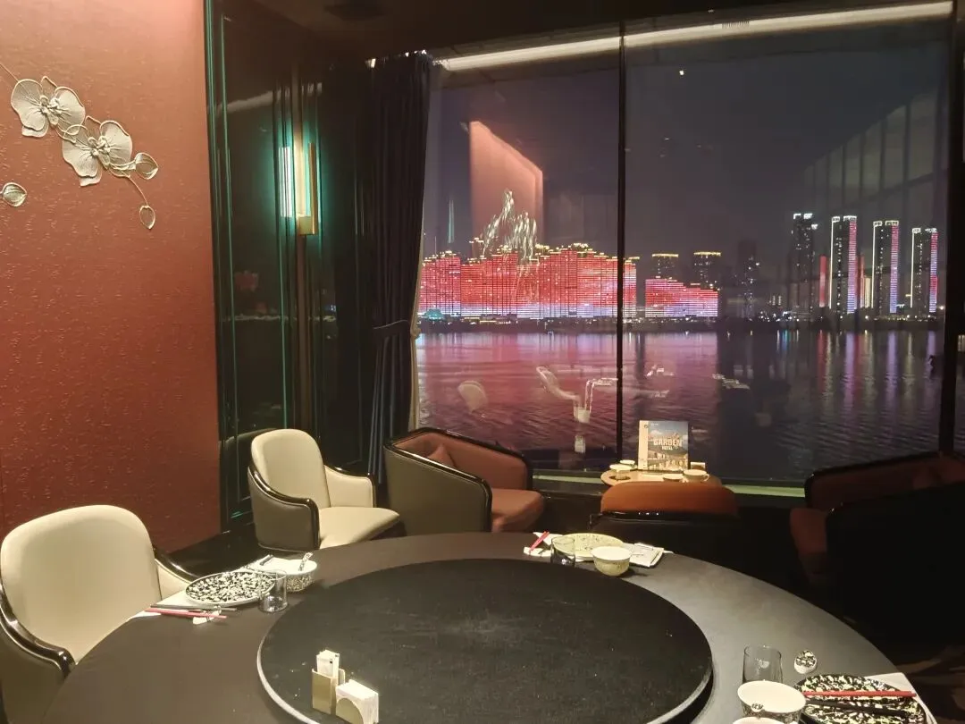 素人真实无广美食分享,力求客观描述,欢迎喜欢美食的大家一起讨论美食🫰主页搜索🔎店名等关键词可看到写过的文章,点击上面名片可关注,感谢各位发财小手动动点赞,点喜欢🌹 君庭餐厅在长沙耳熟能详,今天吃的这家位于湘江豪生酒店,在酒店八楼,可以看到绝佳江景。江对面洋气的灯光秀,湘江上航行的游轮,尽收眼底,十分赏心悦目。 这里以包厢为主,大厅也有几桌,景色也十分不错,感觉君庭老板审美很棒,进门就是大厅落地玻璃窗,河边的夜景一览无余,包厢里窗边放着茶桌,一边欣赏美景一边饮茶,惬意。菜品很丰富,菜单看完要一会,选择余地还是挺多。 奶油的甜加核桃碎的酥脆,生菜的清爽,个人很喜欢这道沙拉,夏天天热应该很合适。