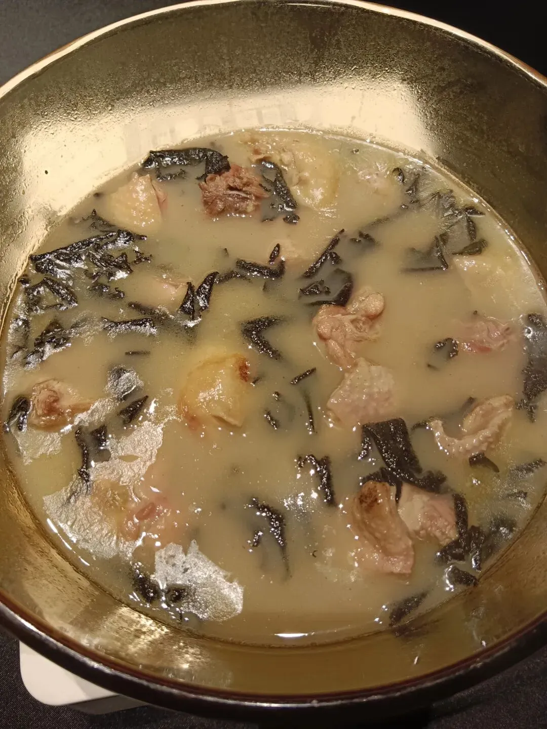 黄山岩耳煨富硒鸡 鸡汤炖的很浓郁,没什么其他花哨的调味,主打一个炖鸡的原汁原味。