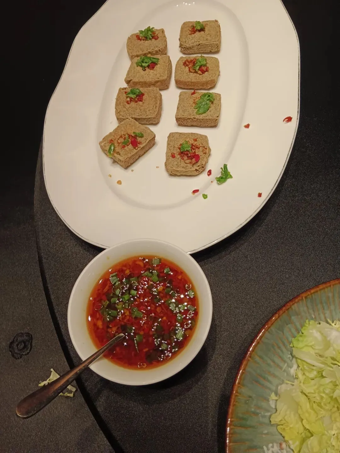 餐厅臭豆腐都差不多,炸的酥脆,辣椒油一般,自然跟外面小摊口味比不了,但是想吃时候解馋不错。
