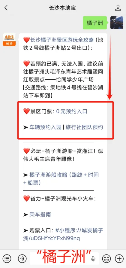 一键直达预约入口及游玩攻略,关注【长沙本地宝】,在后台回复【橘子洲】即可获得!