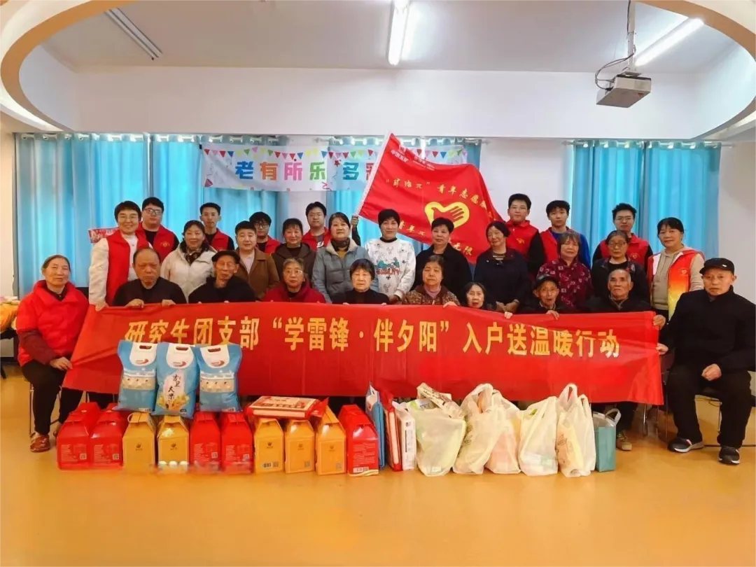 研究生团支部的青年们走进后湖居家养老服务站,开展“学雷锋·伴夕阳”敬老活动。志愿者们为老人们送去精心准备的慰问物资,并分组上门打扫卫生、整理家务。大家围坐在老人身旁,耐心倾听他们的故事与心声,共同追忆红色岁月,齐声高唱经典红歌,现场欢声笑语不断。此次活动不仅为老人们送去了物质上的关怀和精神上的慰藉,更让青年学子们在躬身实践中深刻体悟了尊老爱老的传统美德,为后续常态化开展为老服务奠定了坚实基础。