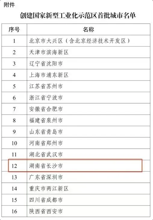 长沙上榜!工信部公布创建国家新型工业化示范区首批城市名单
