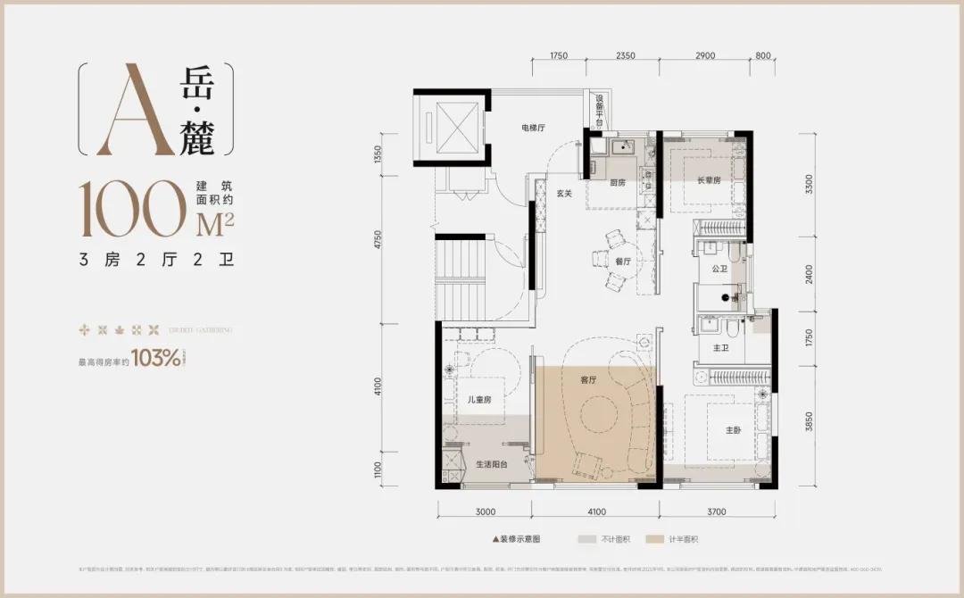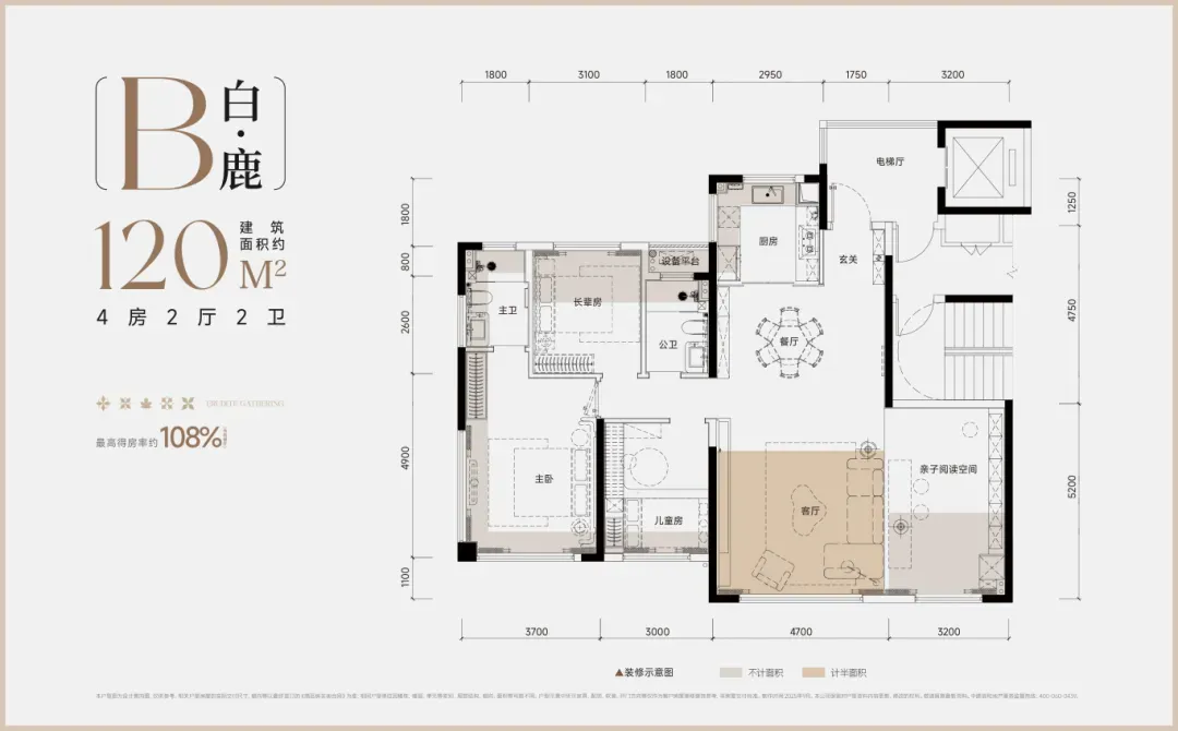 主推建面约98-139㎡新规产品,约108%起的高实际使用率。