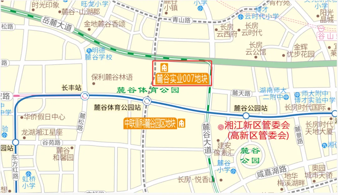 该地块紧邻岳麓大道,距离地铁6号线麓谷体育公园站约600米,交通较为便利。
