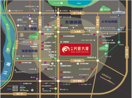 兴愿大厦位于长沙市雨花区韶山北路495号,坐落于东塘商圈核心地段,商业氛围浓厚,人流密集,是区域消费的核心承载地。项目毗邻地铁3号线和7号线的换乘站东塘站地铁口,紧靠主干道韶山路和劳动路交叉口,交通便捷。周边汇聚了雅礼中学(本部)、中雅培粹(本部)、砂子塘(本部)、枫树山(本部)等教育资源,以及湘雅附二、省儿童医院、中医药大学附属医院等知名医院。