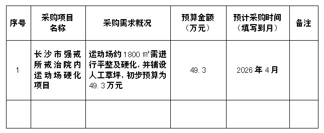 为便于供应商及时了解本单位采购信息,根据有关采购制度,现将戒治院内运动场硬化项目采购意向公开如下: