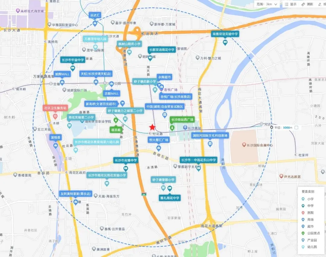 该地块所处高铁新城板块处于发展阶段,现状投资价值较高,规划利好较多。位置交通便利,邻近地铁2号线、4号线,多条公交线路环绕,且距离杜花路地铁站仅0.2km。周边生活氛围浓厚,教育、商业、医疗配套完善,地块3km范围内聚集了砂子塘魅力之城第二小学、学长沙市南雅中学、社区卫生服务站、购物中心吾悦广场(长沙高铁店)等生活配套。