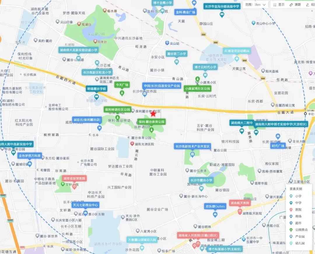 该地块所处麓谷板块现状投资价值较高,所在位置交通便利,邻近地铁6号线,多条公交线路环绕,且距离麓谷体育公园地铁站仅0.7km。周边生活氛围浓厚,教育、商业、医疗配套完善,地块3km范围内聚集了博才梅溪湖小学(北校区)、明德麓谷学校、三甲医院湖南航天医院、购物中心欢乐颂Outlets等生活配套。