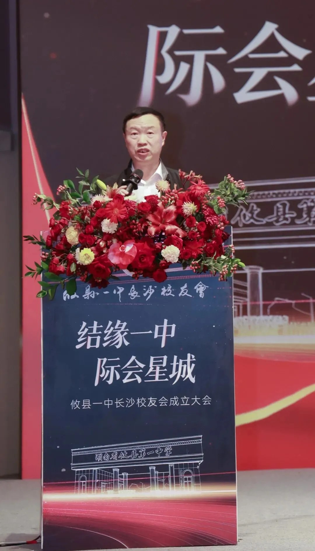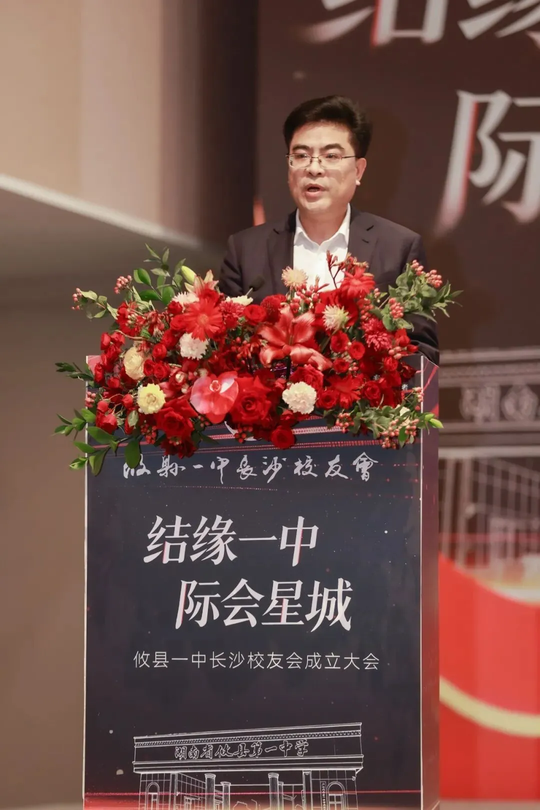 活动在庄严而温馨的氛围中拉开帷幕。攸县一中党委书记王廷首先致辞,他深情回顾了母校的办学历史与成就,并对长沙校友会的成立表示热烈祝贺。王廷书记指出,校友是学校最宝贵的财富和最可信赖的力量,希望长沙校友会成为连接校友与母校、校友与校友之间的坚实桥梁,汇聚智慧,共谋发展。