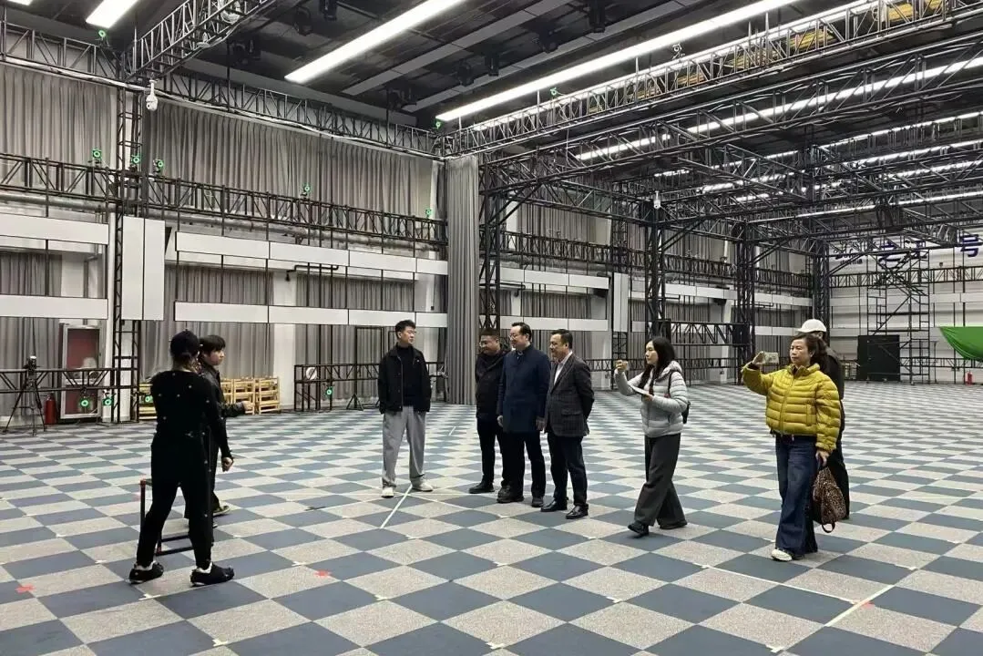 考察的最后一站,考察团走进“之江一号”AI动捕基地,重点考察了动作捕捉拍摄技术在数字内容生产中的前沿应用。现场技术人员演示了高精度动捕设备如何将演员的一举一动实时转化为数字角色的生动表演。