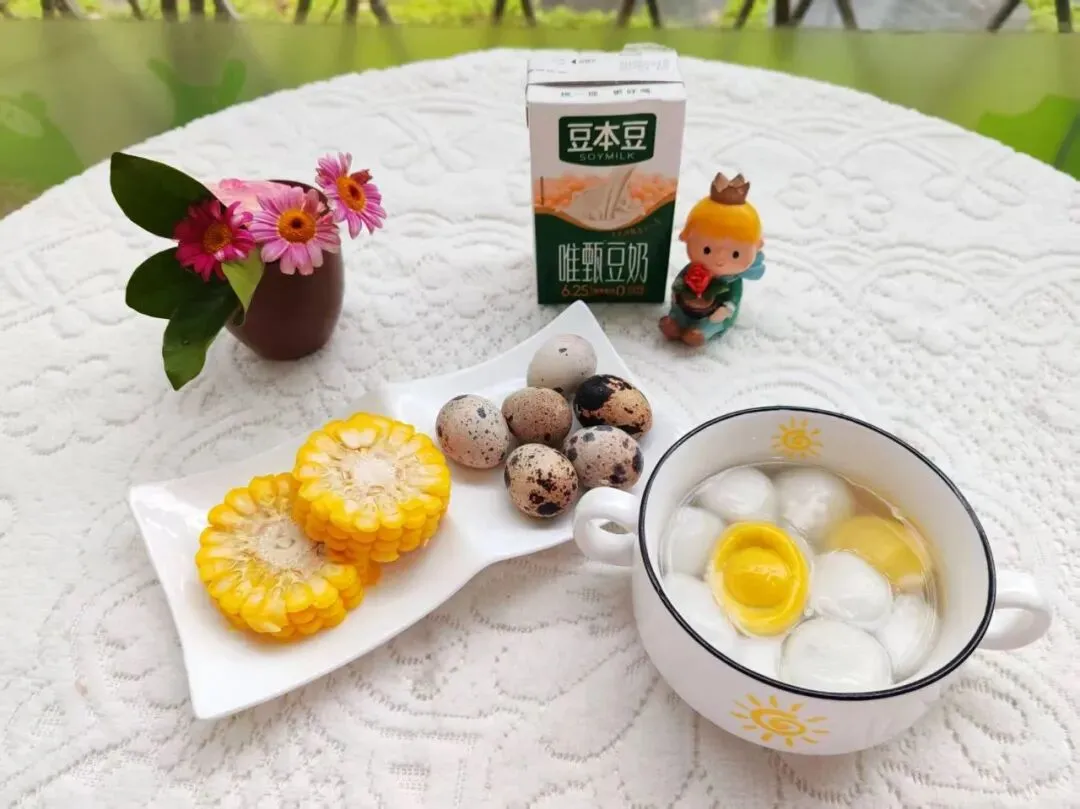 玉米棒 鹌鹑蛋 黑芝麻汤圆