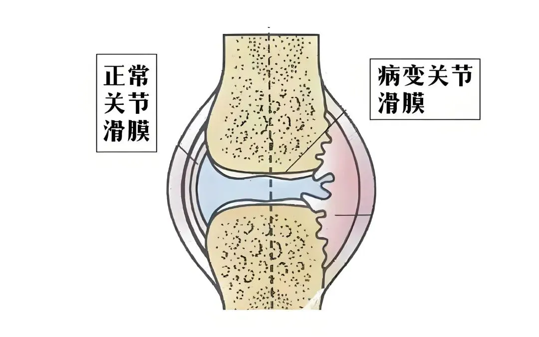 类风湿关节炎是一种自身免疫性疾病,病友们的免疫系统会“认不出”自己的关节组织,反而错误地发起攻击,最先遭殃的就是滑膜。被攻击后的滑膜会发炎、增生、变厚,从原来薄薄的一层,变成充血水肿、摸起来粗糙的“病变组织”——这就是咱们需要清理的“问题滑膜”。