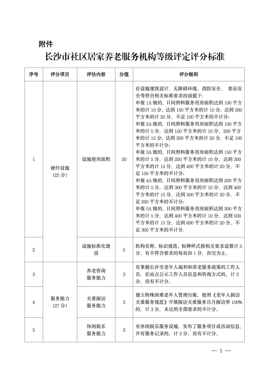 附件:长沙市社区居家养老服务机构等级评定评分标准(见附件)