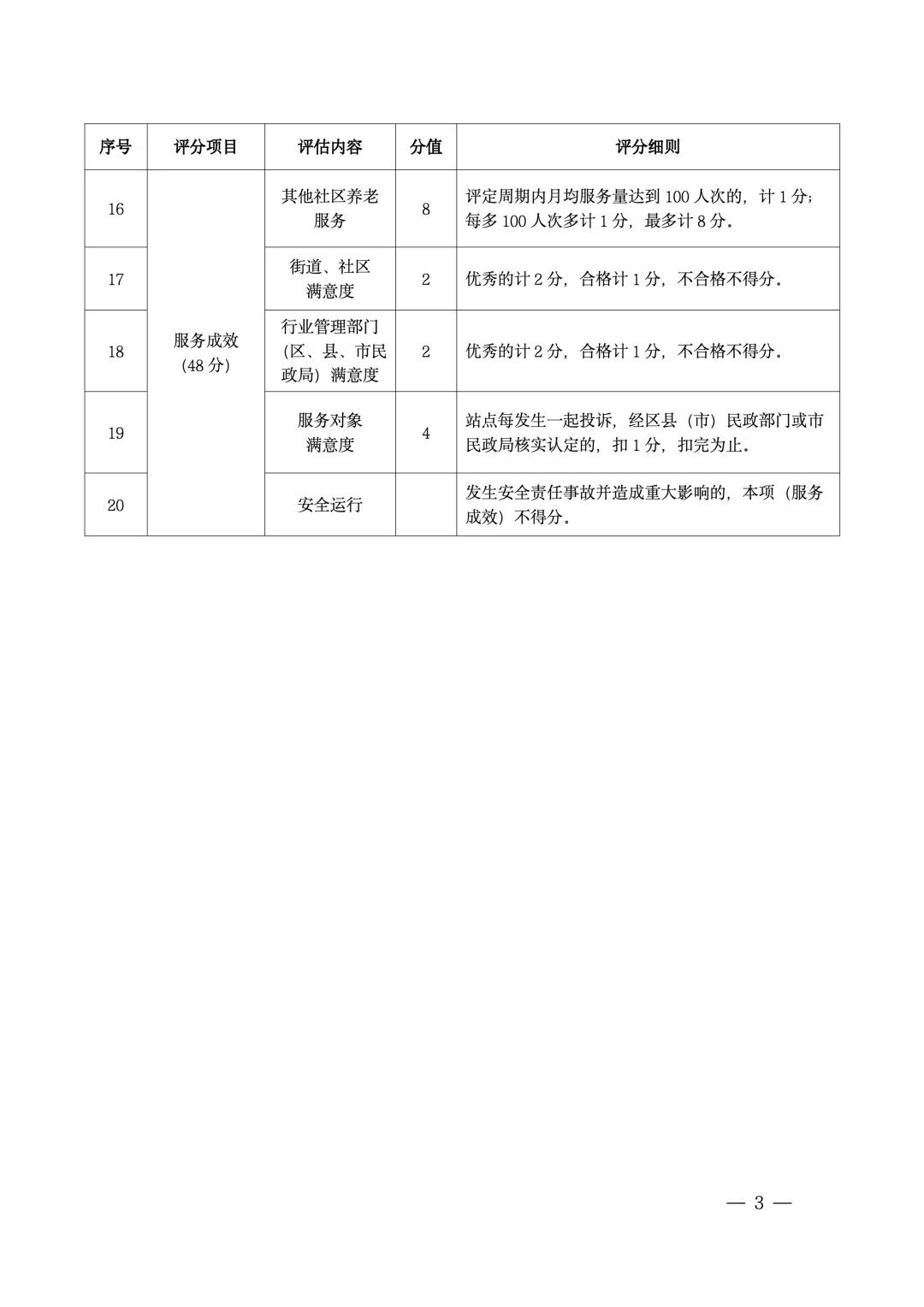 3.服务成效情况评分。由区县(市)民政部门通过公开、公平、公正的信息渠道提取数据进行评分。