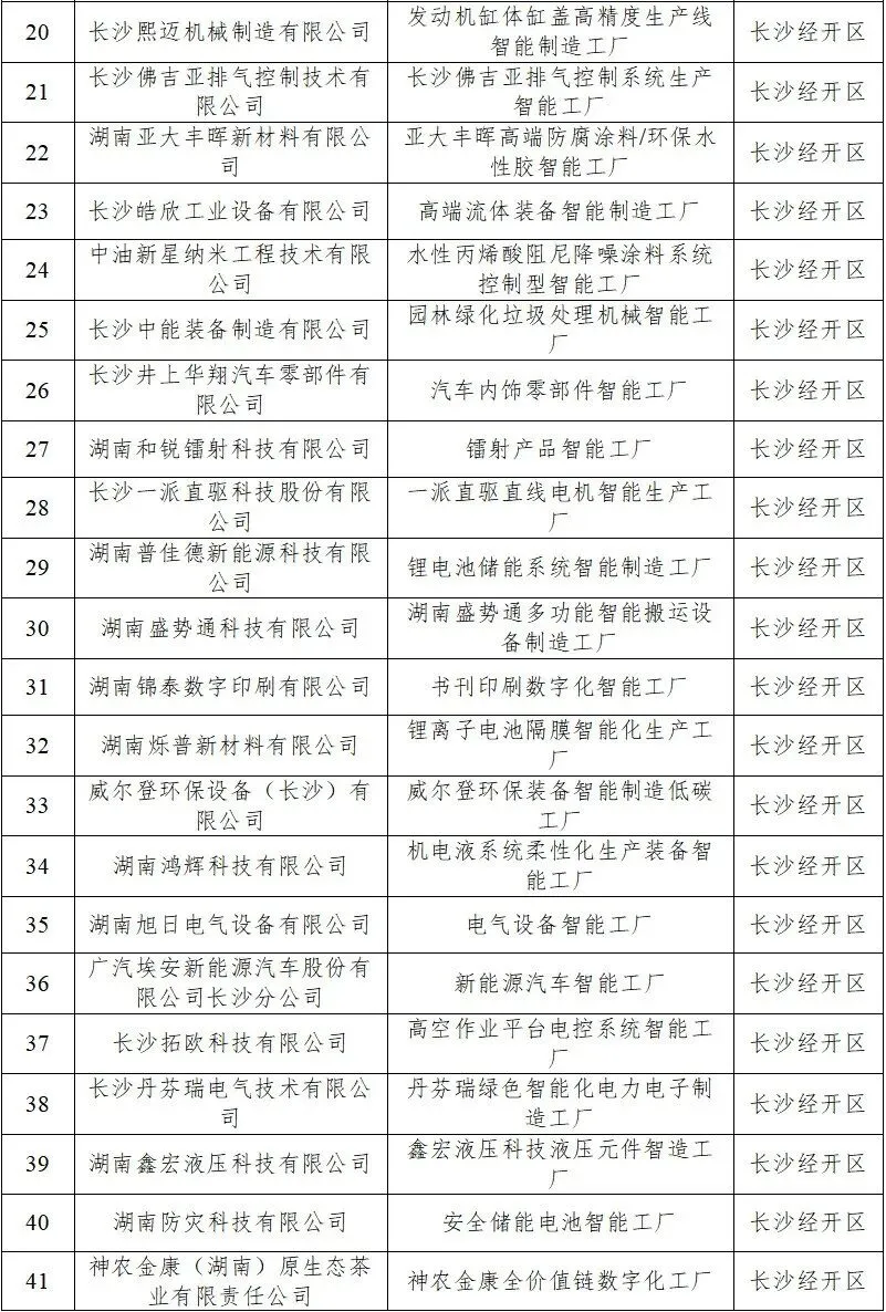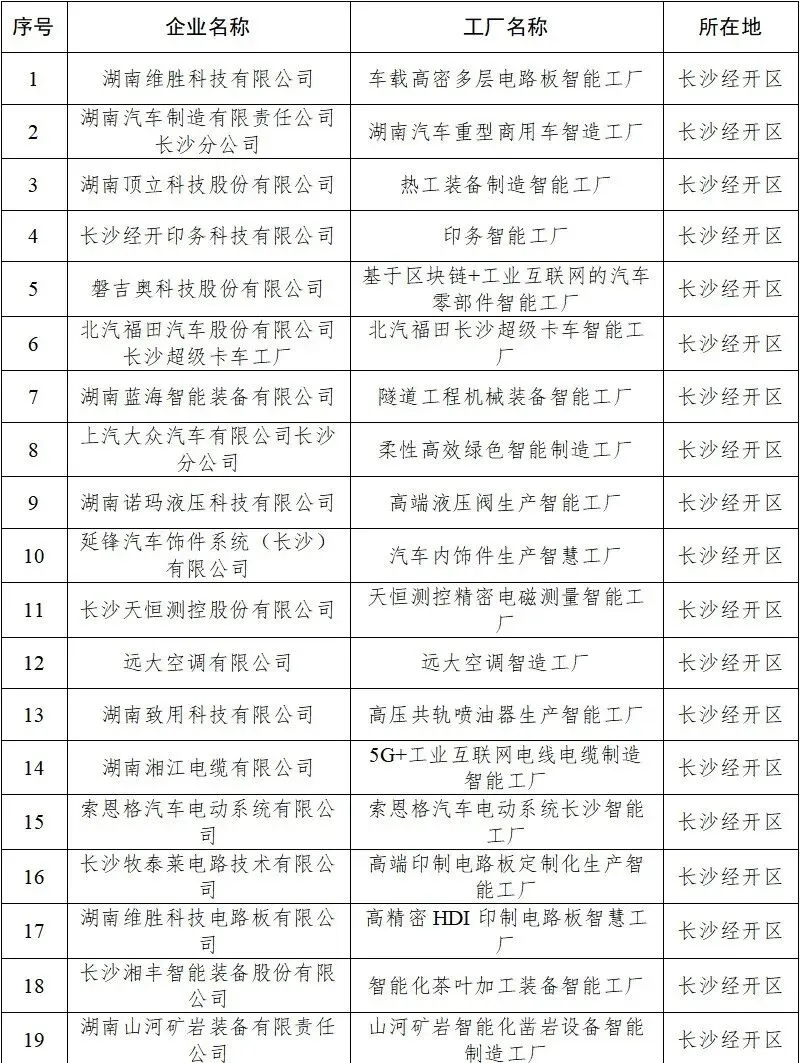 长沙经开区共47家企业申报的智能工厂入选《长沙市2025年度拟认定基础级智能工厂名单》