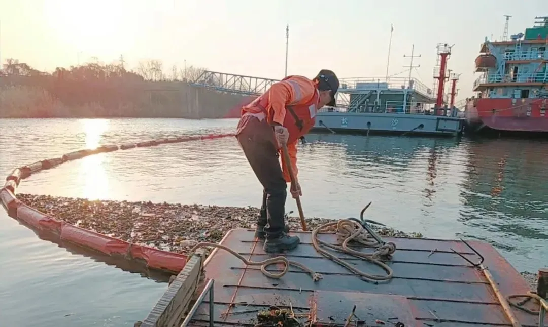 同时,运用水面拦污网对湘江上游水域实施前置拦截,对大面积聚集水葫芦开展集中打捞、统一密闭转运,构建形成“前端围堵、分段清理、全域管控”的工作格局,截至目前,日均清捞水葫芦40余吨,及时转运进行无害化焚烧处置。