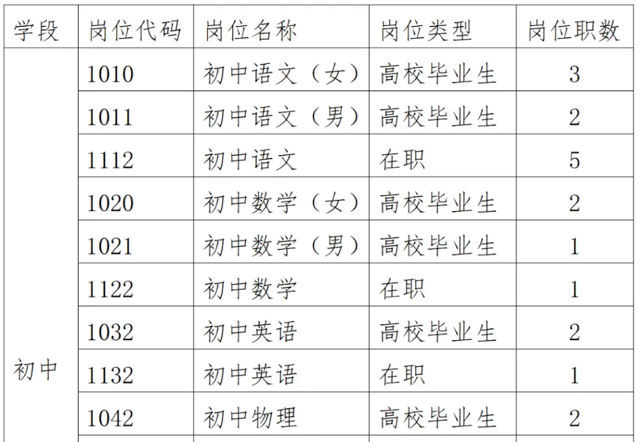 6.专业要求:报考初中学段高校毕业生类岗位的考生所学专业须与报考学科一致。