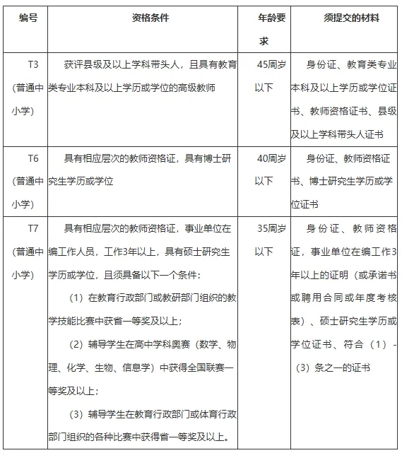 4.年龄:1988年3月及以后出生;特级教师、正高级职称者年龄可放宽至1981年3月及以后出生,退役大学生士兵年龄可放宽三岁。