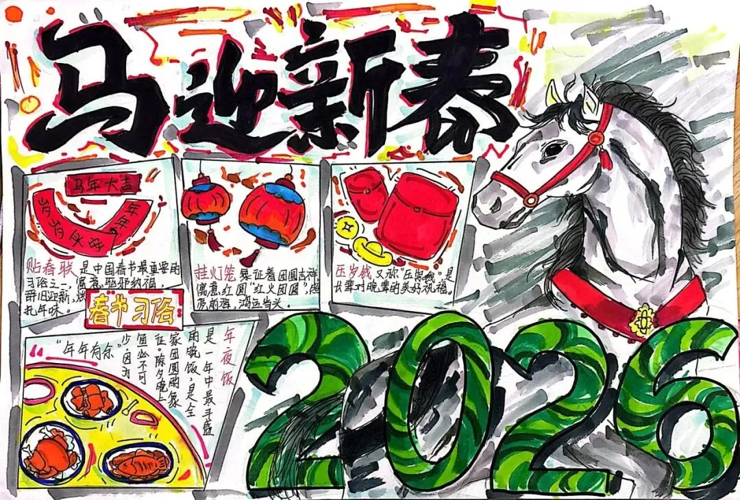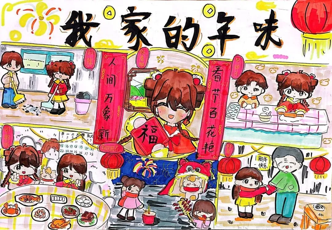 以“我家的年味”为主题,同学们用手抄报、绘画和短视频,记录传统习俗与家庭温情。这项活动让同学们在亲身参与中感受中华文化的魅力,生动诠释了“教育,让生命共鸣”的办学愿景,让雁小南在文化浸润中坚定自信、传承中华文脉。