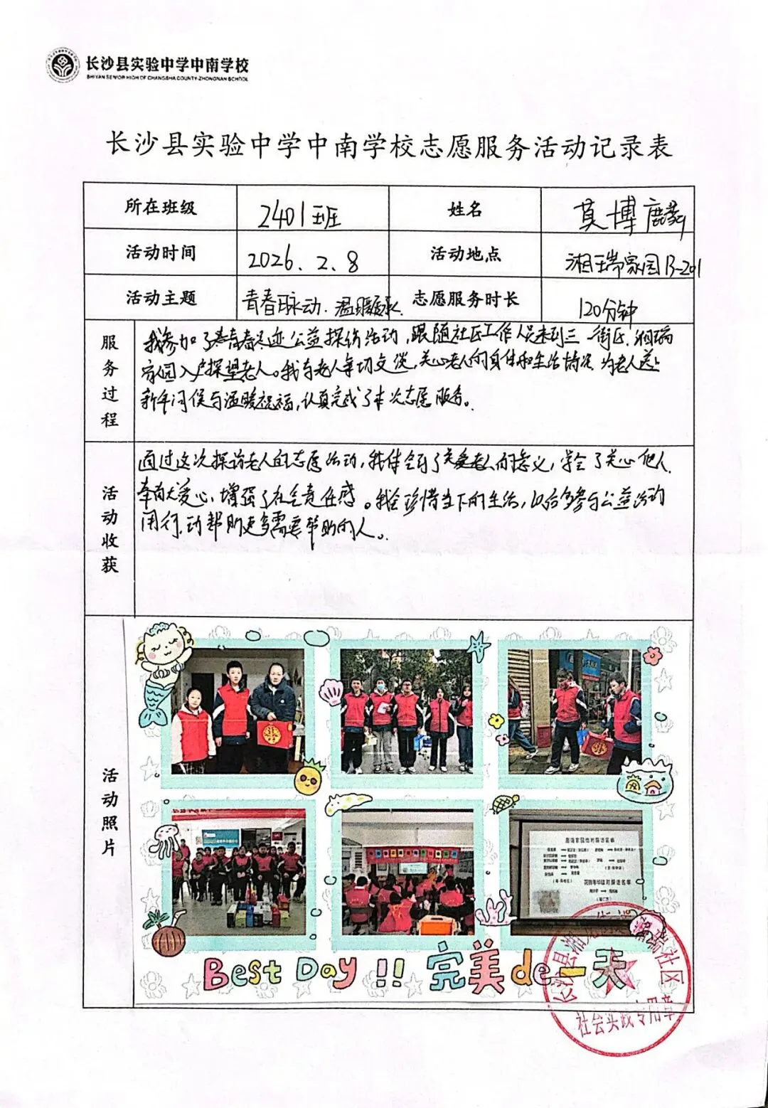 为全面落实立德树人根本任务,深化长沙县“星少年”德育品牌建设,丰富学生假期生活,我校于2026年寒假组织开展了主题鲜明、形式多样的实践活动。全体同学积极响应,热情参与,在实践中受教育、学知识、长才干。现将部分优秀成果予以展示,让我们一同感受雁小南们的实践风采与成长足迹。