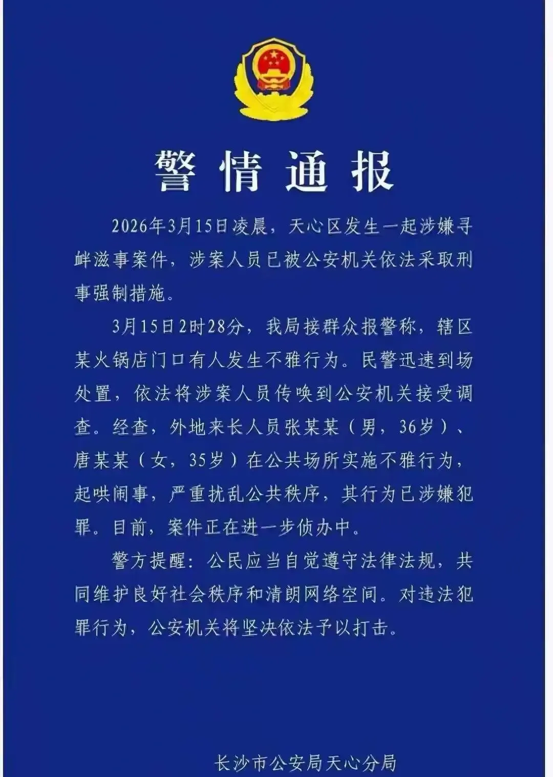 警方通报非常直接: