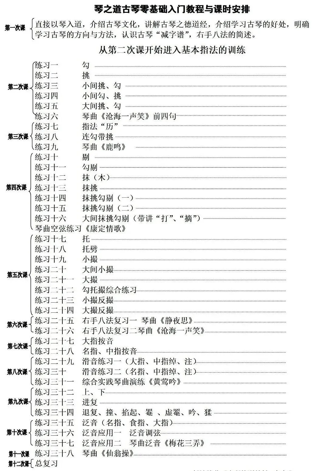 琴零基础入门教程与课时安排