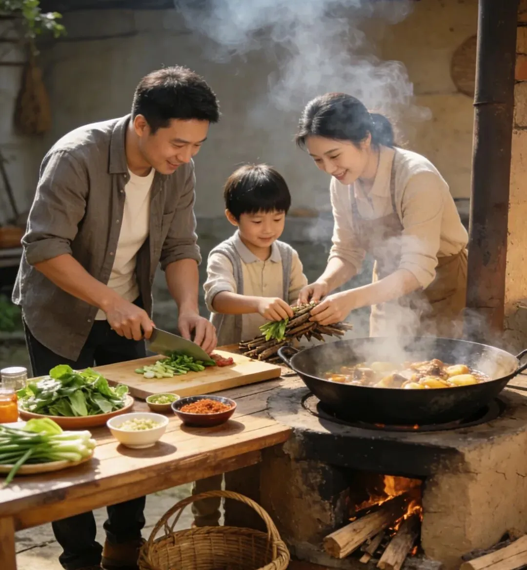 中午的安排直接封神:家庭野炊大锅饭!以家庭为单位租个炉灶,农庄提供锅具、柴火、食材,一口大锅够10个人吃。爸爸生火、妈妈炒菜、孩子打下手,自己做的农家菜,香到孩子多吃两碗饭。