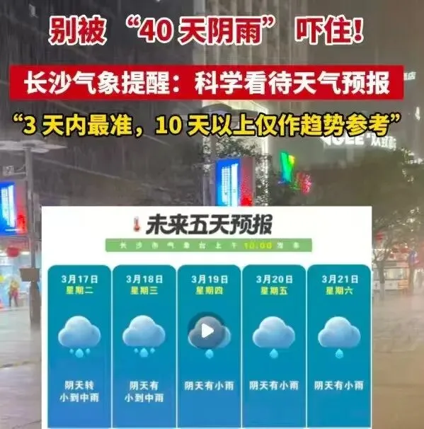 近日,不少同学发现即日起未来40天长沙有40天的连续下雨、未来90天长沙的春雨几乎“全勤”,这是真的嘛?