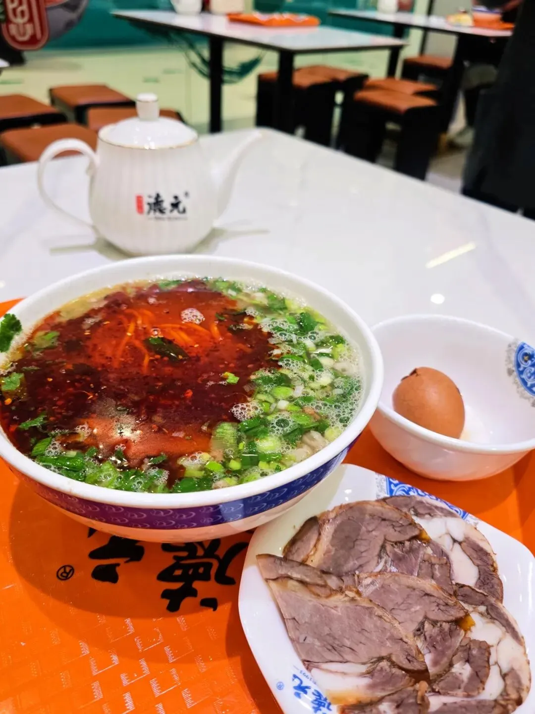 我买了个“肉蛋双飞”套餐,纯汤牛肉面套餐,配上一小碟酱牛肉和卤蛋。