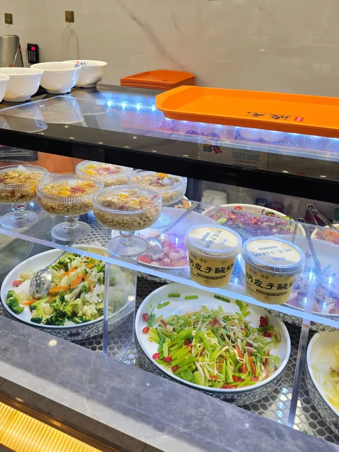 位置很好找,六沟垅地铁站5号口出来,走几步路就到店门口。晚饭点人不少,明档厨房看得清楚,拉面、煮面、炒菜的师傅分工很有序,第一印象不错。