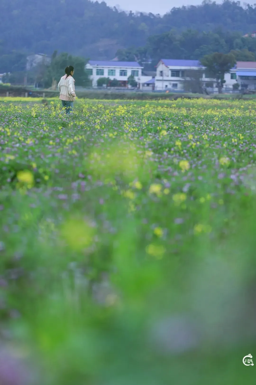 沿着望山耕读往北走500米,硖一组公交站旁的紫云英,正以半开的姿态,诉说着春日的娇羞。受近日降雨影响,这片紫云英只开了一半,没有完全盛放的张扬,反倒多了几分含蓄的美感,像藏在乡野间的小秘密。值得期待的是,等到月底桃花盛开之时,便是紫云英的最佳观赏期,更特别的是,今年的紫云英里还夹杂着零星油菜花,紫与黄交织,解锁春日限定浪漫,比往年更具韵味。